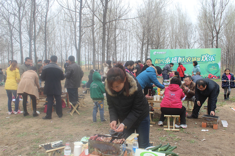 接著,本次活動(dòng)的精彩環(huán)節(jié)——自助燒烤隆重開(kāi)始。工作人員為此做了充分的準(zhǔn)備,不僅為每個(gè)桌子單獨(dú)配備了燒烤爐,菜刀,案板等工具,同時(shí)還精心為客戶準(zhǔn)備了新鮮的羊肉、豬肉、黃瓜、韭菜、西紅柿等豐盛的食材,而且這些食材全部來(lái)自泰盛恒生態(tài)有機(jī)農(nóng)場(chǎng),純綠色,零添加,無(wú)污染!大家紛紛領(lǐng)取食材,自建團(tuán)隊(duì),分工協(xié)作,展示起自己的燒烤功夫來(lái)。不一會(huì)兒,炊煙裊裊,歡聲陣陣,再加上農(nóng)場(chǎng)內(nèi)草色青青,生機(jī)勃勃,一幅綠意盎然的生態(tài)春游畫(huà)卷徐徐展開(kāi)……