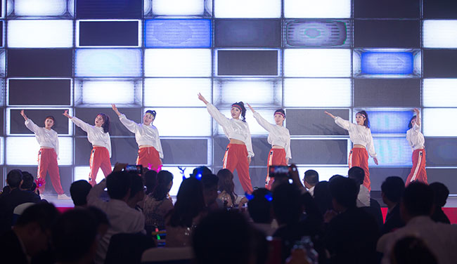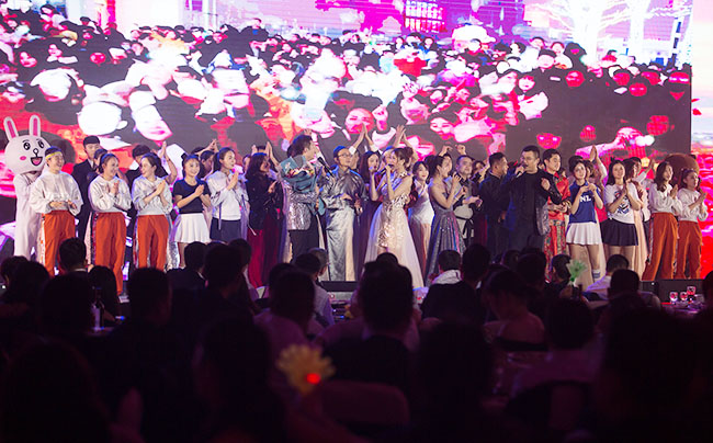 晚會由“聚合力 創(chuàng)奇跡”、“共生長 守初心”、“向未來 啟新程”三大篇章構(gòu)成,歌曲、舞蹈、魔術(shù)、小品、時裝走秀等各類節(jié)目俱全,精彩絕倫,高潮迭起,多才多藝的泰盛恒人,用自己的智慧和協(xié)作,為大家奉獻了一場多姿多彩的視覺盛宴。穿插其間的五輪抽獎活動,及《瘋狂數(shù)鈔票》、《步步高升》等游戲互動環(huán)節(jié),更將整個聯(lián)歡會現(xiàn)場氣氛不斷推向高潮,掌聲、歡呼聲、笑聲沸騰了整個會場。伴隨著一個又一個節(jié)目的精彩演出,晚會在大合唱《攜手同行》的美妙歌聲中圓滿落幕。